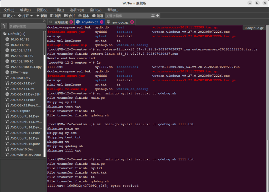 在文本终端上,右键菜单启用zmodem的文件传输。