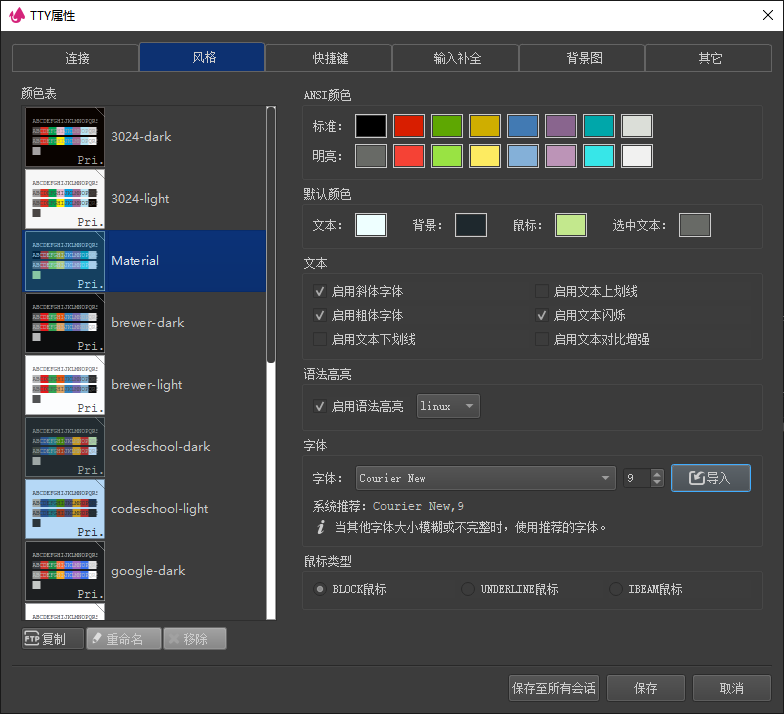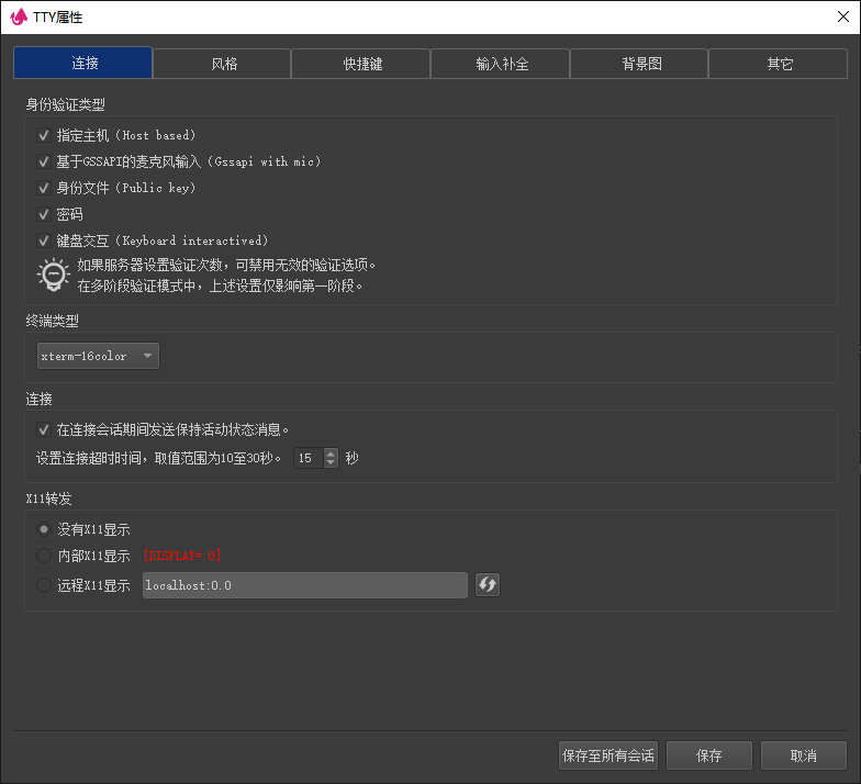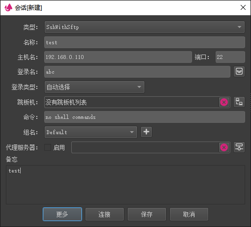 文本终端连接 以SSH的连接过程为例,其它如Telnet\Rlogin等文本终端也是差不多的,自行摸索。 SSH的连接信息,支持SSH的连接同时也支持SFTP助手的连接。 更多其它信息 Doc navigationVNC终端连接 →
